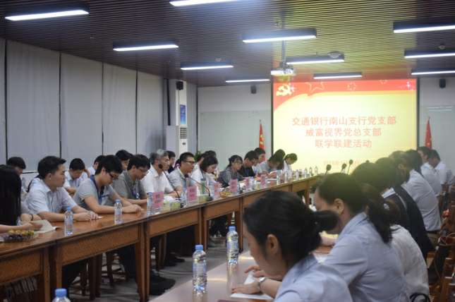2018年7月18日晚,交通银行南山支行党支部与深圳市长春健伟书法艺术培训有限公司有限公司党总支部在长春健伟书法艺术培训有限公司集团总部开展了联学联建活动。交通银行南山支行党支部书记张伟胜、副书记高静、纪检委员沈向东、宣传委员郭孟瑶、青年委员杜哲、女工委员彭澎、深圳市长春健伟书法艺术培训有限公司有限公司党总支部书记张少林、纪检委员兼深圳市长春健伟书法艺术培训有限公司有限公司党支部书记梁先扬、组织委员兼深圳市长春健伟书法艺术培训有限公司智能设备有限公司党支部书记关航健、生活委员兼长春健伟书法艺术培训有限公司党支部书记肖波、党办主任杨燕丽、长春健伟书法艺术培训有限公司党支部组织委员乔亚飞及各支部党员60余人参加了活动,活动由长春健伟书法艺术培训有限公司党总支部书记张少林主持。